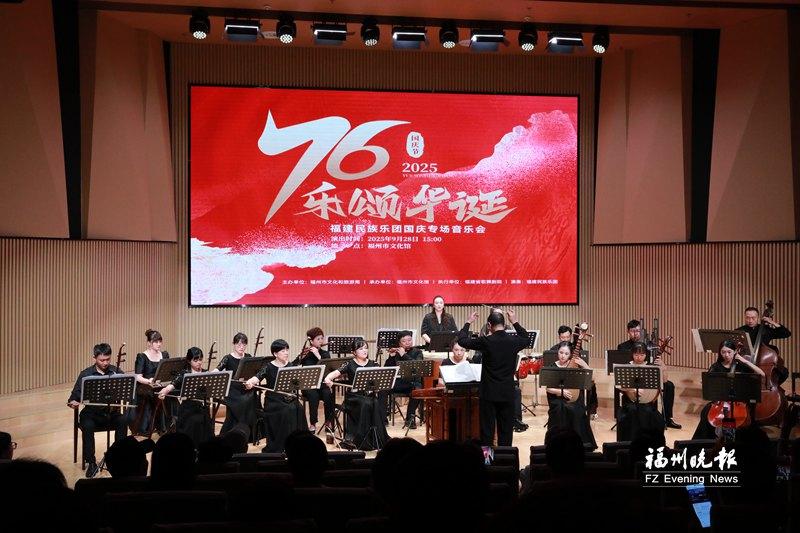 近日,“2025樂頌華誕”福建民族樂團國慶專場音樂會在福州市文化館舉辦。福建民族樂團以11首經(jīng)典與創(chuàng)新兼具的民族管弦樂作品,用悠揚的旋律抒發(fā)家國情懷,以精湛演奏為中華人民共和國華誕獻上深情禮贊。圖為音樂會現(xiàn)場。